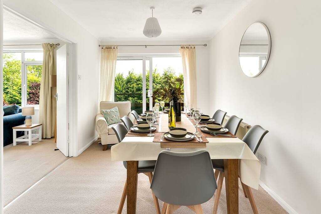 Inside, the house is clean, light-filled and simply furnished, offering a relaxed, homely feel throughout. There’s plenty of space to unwind after a busy day, whether you've been out exploring or working nearby. Upstairs, you'll find three bedrooms: a spacious king-size with views over Penryn Harbour, a double and a triple single room, making it ideal for families or groups. The main bathroom includes a shower over bath and there’s a second bathroom with shower on the ground floor. The open-plan living and dining area is a great space to gather, with a smart TV, fast WiFi and a selection of board games and puzzles for slower-paced evenings. The kitchen is fully equipped for cooking at home, including an oven, hob, fridge, microwave, and the basics you’ll need to prepare meals. A washing machine and freezer are located in the garage, which is accessible from inside the house, ideal for longer stays or shift workers. Outside, the enclosed rear garden is simple but practical, with outdoor seating and sliding doors opening directly from the dining area, perfect for catching a bit of fresh air with your morning coffee or an evening drink. Whether you're visiting for work at the docks or enjoying a Cornish break with family or friends, this comfortable and straightforward home makes a reliable base, close to the coast and all that Falmouth has to offer.