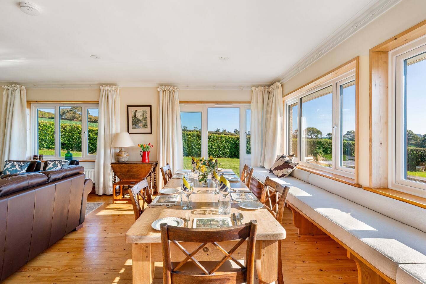 Tucked away on Passage Hill in the charming village of Mylor, this spacious and characterful three-bedroom cottage is surrounded by rolling countryside and beautiful coastal walks. Just a five-minute stroll takes you to the local store, café, butchers, fishmongers and the welcoming Lemon Arms pub, and a ten-minute walk leads to the famous Pandora Inn where you can enjoy drinks and food on the pontoon overlooking the water. Inside, the cottage has a warm, traditional charm. It has been a much-loved family home for many years and has been thoughtfully maintained for comfort and relaxation. Expect classic interiors, cosy furnishings and peaceful views from every window. Key features • Two king-size bedrooms (one with ensuite) • One twin bedroom (can be made up as a super-king on request) • Family bathroom, ensuite and two separate WCs • Large dining area with countryside views, seating up to ten guests • Cosy living room with air source pump central heating • Fully equipped kitchen for family cooking • Large south-facing garden with two outdoor dining tables • Private driveway with ample parking • Smart TV, board games and chess board • Peaceful workspace for remote working • Incredibly quiet setting where you can hear owls at night and often spot deer resting in the garden • Split-level layout with one bedroom on the same floor as the kitchen and living area, ideal for guests with limited mobility The kitchen is well equipped with everything you need to prepare meals at home, whether you are cooking for family or friends. The bright dining area runs along the side of the house, with large windows framing the surrounding countryside, making it ideal for relaxed breakfasts or long evening meals. Outside, the large south-facing garden is perfect for morning coffee or evening drinks in the sun. From the doorstep, you can explore a network of countryside and coastal walks, including loops around Mylor village and scenic routes to the Pandora Inn, Mylor Bridge and the creekside. Whether you are seeking a peaceful family escape, a countryside break with friends or a quiet place to work remotely, this cottage offers the perfect balance of rural tranquillity, local charm and Cornish coastal beauty. It is also a great choice for longer winter stays, particularly for marine workers looking for comfortable accommodation near Falmouth’s maritime hubs.