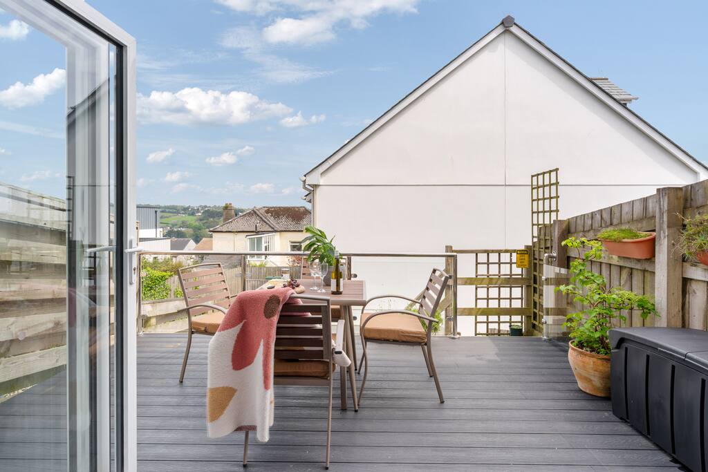 Welcome to your perfect Cornish retreat – a stylish three-storey home in a peaceful corner of Falmouth, just an 8-minute stroll from the town centre. Set over three floors, this spacious house sleeps 4 guests and offers breathtaking views over the harbour, Flushing, and even St Mawes Castle from the upper bedrooms. On the top floor, you'll find a luxurious super king bedroom with zip-link beds that can be configured as either a super king or two singles, offering flexible sleeping arrangements. This room also boasts an ensuite bathroom with a large walk-in-shower, and breathtaking panoramic views. The second bedroom features a comfortable king-size bed, while the third is a cosy single – ideal for families or small groups. On the ground floor, you’ll find a fully equipped kitchen and a stylish open-plan living and dining area – perfect for relaxing or gathering with family and friends. Bi-fold doors open out onto the beautifully decked terrace, ideal for dining alfresco or enjoying a quiet morning coffee. A convenient WC is also located on this floor. Inside, the home offers everything you need for a comfortable stay, including high-speed Wi-Fi, a TV, washing machine/dryer, and ironing facilities. Private off-road parking adds extra convenience in this popular harbour town. You'll be steps away from a wide array of restaurants, cafes, and shops. Explore nearby attractions including the vibrant Maritime Museum, historic Pendennis Castle, and beautiful Gyllyngvase Beach, all within walking distance. Whether you're seeking a relaxing getaway or an adventure-filled holiday, our home’s prime location offers easy access to all that Falmouth has to offer, rain or shine.