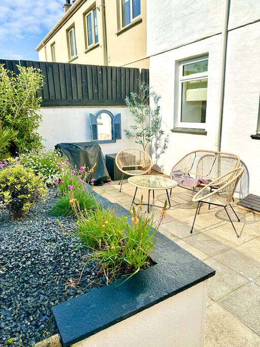 Situated next to the popular Sunshine Café & Yoga, our apartment is nestled in the heart of Penryn, a historic town with a vibrant community. The apartment features a spacious and well-lit bedroom with a comfortable king-sized bed, with soft linens and pillows to ensure a restful night's sleep. The living area has a sofa, a flat-screen TV, and high-speed Wi-Fi for your entertainment and connectivity needs. Large windows allow plenty of natural light to flood the space, creating a warm and inviting atmosphere. The fully equipped kitchen is perfect for preparing your favourite meals. It includes modern appliances such as a fridge/freezer, hob, oven, microwave, D'Longhi coffee machine, kettle toaster, and all the essential cookware and utensils. Enjoy your meals at the charming dining table, which seats up to four people. Step outside to the front terrace, where comfortable outdoor seating invites relaxation in the sun trap. Don't forget to use the BBQ! Bedroom: King-sized bed, fresh linens, ample storage space Bathroom: Bath with shower over head, fresh towels, complimentary toiletries. Extras: Washing machine/dryer, ironing facilities, hairdryer, and heating. Getting Around Penryn is well-connected by public transport. There is a bus stop just a short walk from the apartment, providing easy access to nearby towns and attractions. Local buses also run regularly, and there are ample taxi services available. Falmouth is just a 10-minute drive away, this bustling seaside town offers beautiful beaches, maritime attractions, and a variety of restaurants and shops.