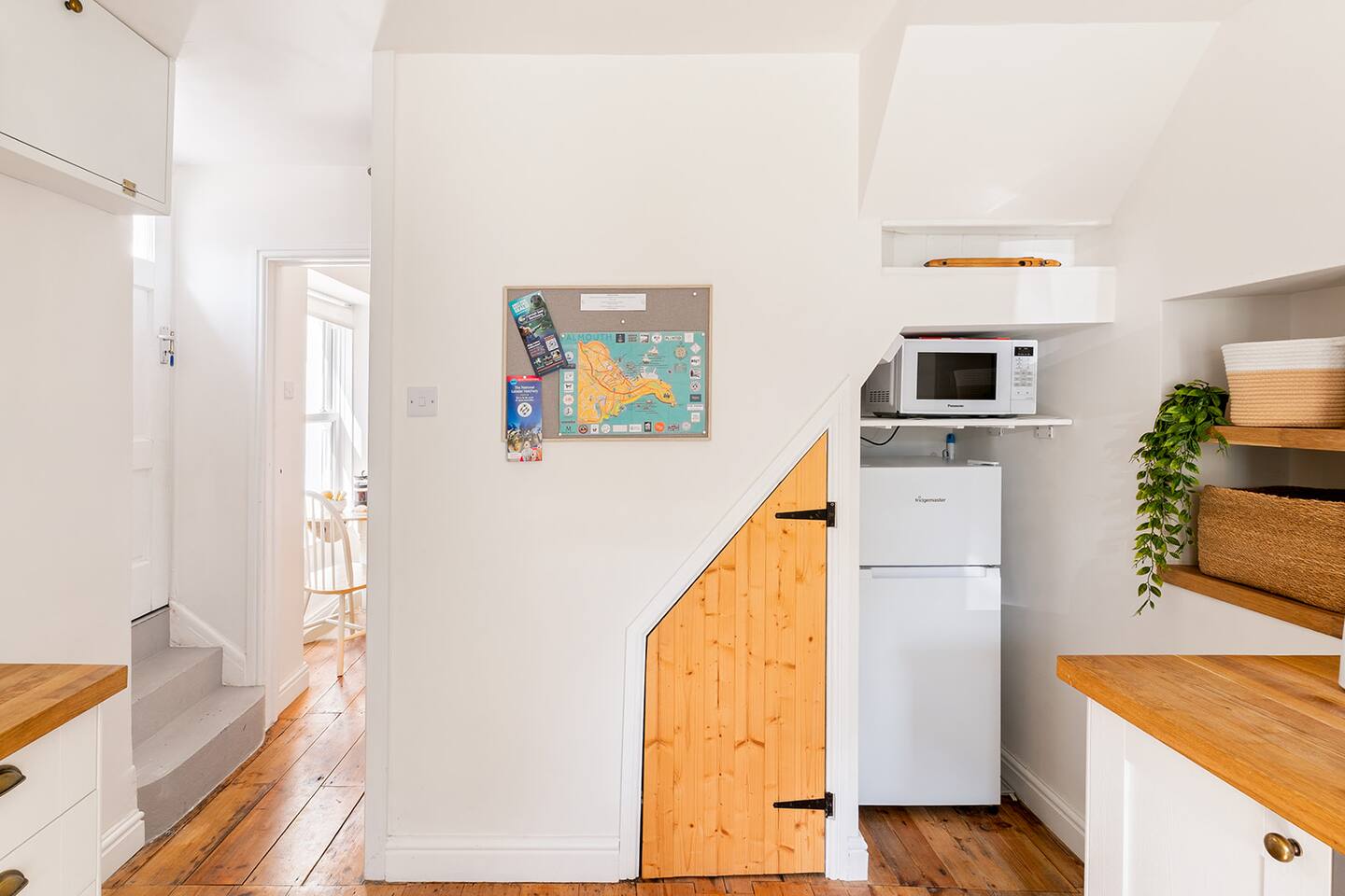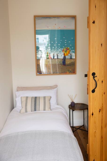 This beautiful cottage is a hidden gem. You'll find everything you need and more, including an inviting living space perfect for relaxing after a day of exploring and a stylish kitchen with all the modern conveniences. Thoughtful details like brass handles, a brass tap, and open shelving with unique crockery make it feel like a home away from home. Wake up in the bright double bedroom, equipped with ample storage space to make yourself comfortable. There's also a single futon bed in a separate room, ideal for two single guests or a small family. Next door, you'll find a modern bathroom with a shower. The location is unbeatable, just a 15-minute walk to Gyllyngvase Beach and 20 minutes to Swanpool, where you can enjoy drinks overlooking the water. In five minutes, you'll reach the best restaurants, shops, and pubs along the high street. With free off-road private parking, you won't need the car much. Instead, pull on your walking shoes and explore Falmouth's coastal walks, art galleries, and live music scene on foot. Relax in the cosy living area on the comfortable sofa, catching up on your favourite shows on the flat-screen TV with streaming services. Stay connected with high-speed fibre internet throughout the house and freshen up in the modern bathroom featuring a shower, towels, and complimentary toiletries. Extras such as a washing machine/dryer, ironing facilities, and heating add convenience to your stay. You'll be steps away from a wide array of restaurants, cafes, and shops. Explore nearby attractions including the vibrant Maritime Museum, historic Pendennis Castle, and beautiful Gyllyngvase Beach, all within walking distance. Whether you're seeking a relaxing getaway or an adventure-filled holiday, our cottage’s prime location offers easy access to all that Falmouth has to offer, rain or shine.