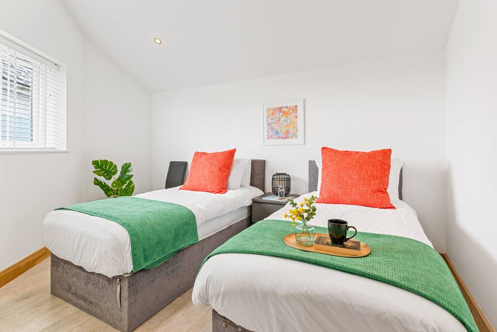 This modern single-level bungalow is full of character, with tall ceilings, exposed wooden beams and sunlight streaming through high windows. The open-plan living, dining and kitchen area is a welcoming social space where you can gather on the large corner sofa, curl up by the cosy gas fire, stream a film on the flat-screen TV or enjoy a board game with a glass of wine. The kitchen is fully equipped with an espresso machine, dishwasher, washing machine and tumble dryer. Two comfortable bedrooms, one with a king-size bed and one with twin beds, sleep up to four guests. The bathroom includes both a walk-in shower and a bath, complete with fluffy towels and complimentary toiletries. Outside, the patio offers glimpses of Falmouth Harbour and is perfect for alfresco breakfasts or evening drinks. Just a short stroll away, Falmouth’s lively high street is lined with restaurants, cafes, shops and pubs. Gyllyngvase and Swanpool beaches, the Maritime Museum and Pendennis Castle are all within walking distance. Whether you come for coastal walks, art galleries, live music or simply to unwind, this cottage is the ideal base for your Cornish getaway. Families with children and babies are very welcome, and we provide children’s cutlery, bowls and plates to make your stay easier.