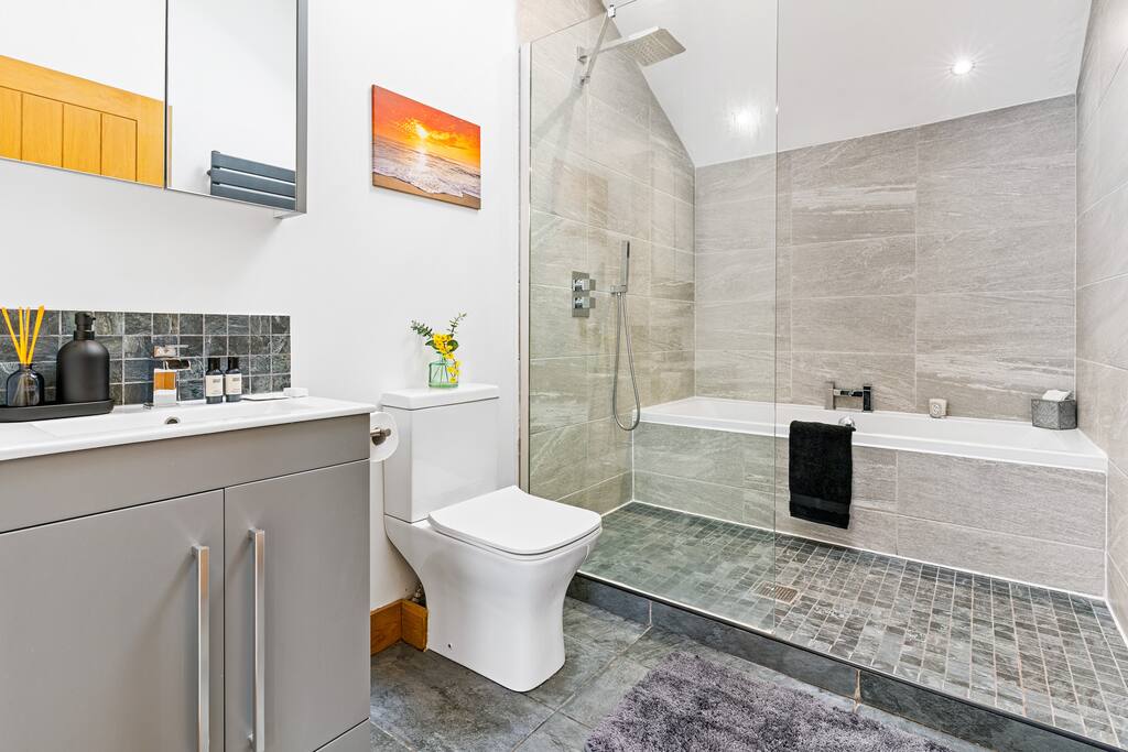 Stylish two-bed cottage in Falmouth with high wood-beamed ceilings and a cosy gas fire at the heart of the home. The open-plan layout creates a warm sociable space, perfect for sharing wine on the sofa, streaming a film, or playing board games. Just a short stroll to beaches, Kimberley Park and the town’s best shops and restaurants. With harbour glimpses from the patio, fibre Wi-Fi, private parking and a fully equipped kitchen, it’s ideal for couples, families or small groups. Dog friendly too!