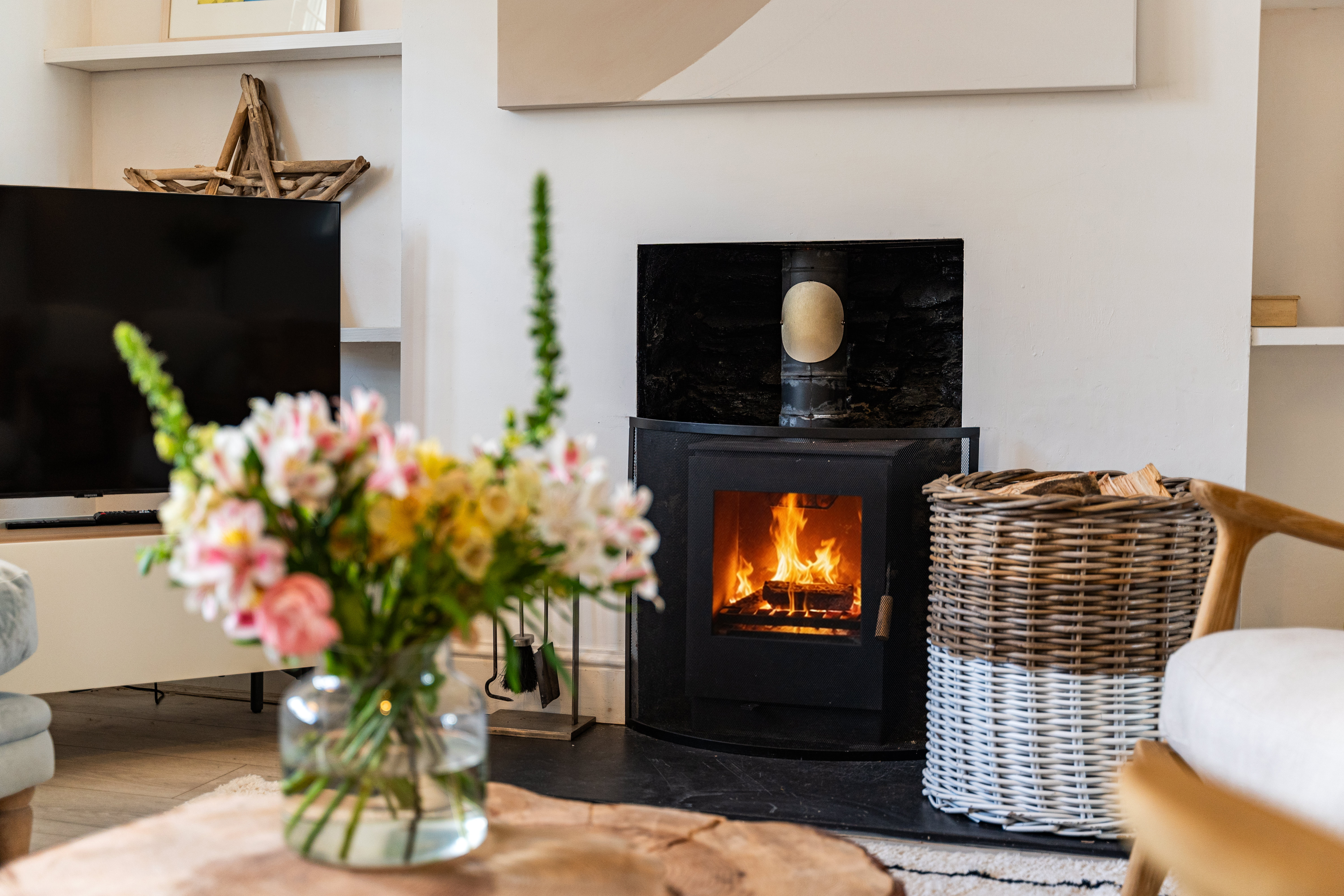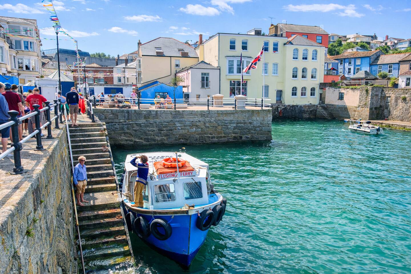 Interior – Providing plenty of space for guests throughout their stay, the property is arranged over three floors. On the ground floor, you’ll find the airy open plan living/dining room, well-stocked kitchen, utility and a convenient downstairs toilet. The first floor features a spacious master bedroom with kingsize bed, a twin bedroom and a family bathroom with shower. On the second floor, there is a double bedroom with kingsize bed, an en-suite bathroom with shower and a fabulous view. Please note that a baby bath is available for your convenience during your stay. Please be advised that the second flight of stairs leading up to the top floor is steep and may be unsuitable for some. Exterior – The private courtyard to the rear is decked, complete with an outdoor dining table large enough to accommodate everyone comfortably. Access to the courtyard is available through a gate to the rear. Facilities – The property offers central heating with instant hot water on demand, along with a cosy log burner in the living area. The kitchen boasts double electric ovens, a hob, a full-size dishwasher, a spacious fridge, a Nespresso compatible coffee machine and Nutribullet. Next door, in the utility, you will find a washing machine, freezer, microwave and juice extractor. Additionally, guests can enjoy amenities such as fast WiFi , a BOSE music system and a smart TV with an Amazon Fire Stick. For leisure activities, a selection of board games, cards and puzzles are neatly stored under the TV for your entertainment. Kayaks - For those looking to get out on the water, we have two kayaks available for guest use. You’ll find them in the back garden through the rear gate, with life jackets and oars in the shed where the mirror is hanging. Other information We have your family's needs covered with readily available amenities including a travel cot, baby bath, changing mat and highchair. We also provide both indoor and outdoor clothes drying racks, along with an iron and ironing board for any last-minute touch-ups. Parking – Convenient on-street parking is available directly across from the house on the road leading down to the property. Getting around – Situated in the heart of the village, the bus stop is conveniently located right outside. And hey, if you spot some fellow holidaymakers huddled under the front porch, don't worry, they're not lost - they're just taking shelter from the rain while waiting for the bus. It's like our own little holiday hideout! The buses operate hourly, offering a practically private shuttle service to Falmouth. Alternatively, ferries departing from Flushing Quay to Falmouth run every 30 minutes, all year-round. For a unique travel experience, consider the Falmouth Water Taxi, providing a delightful journey from Flushing Quay directly to Falmouth - a perfect way to explore the area. Eat & Drink – Craving a delicious meal or a local brew? Look no further than Harbour House, The Royal Standard and The Waterside Restaurant, all just a stone’s throw away ..... plus there's a delighful village shop just round the corner.